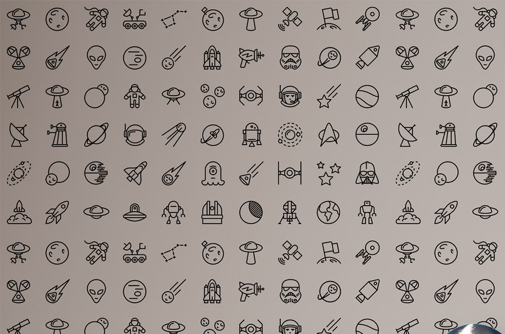Íconos dibujados en Illustrator, maquetados en lapiz. Aptos para imprimir en papel para empapelado.