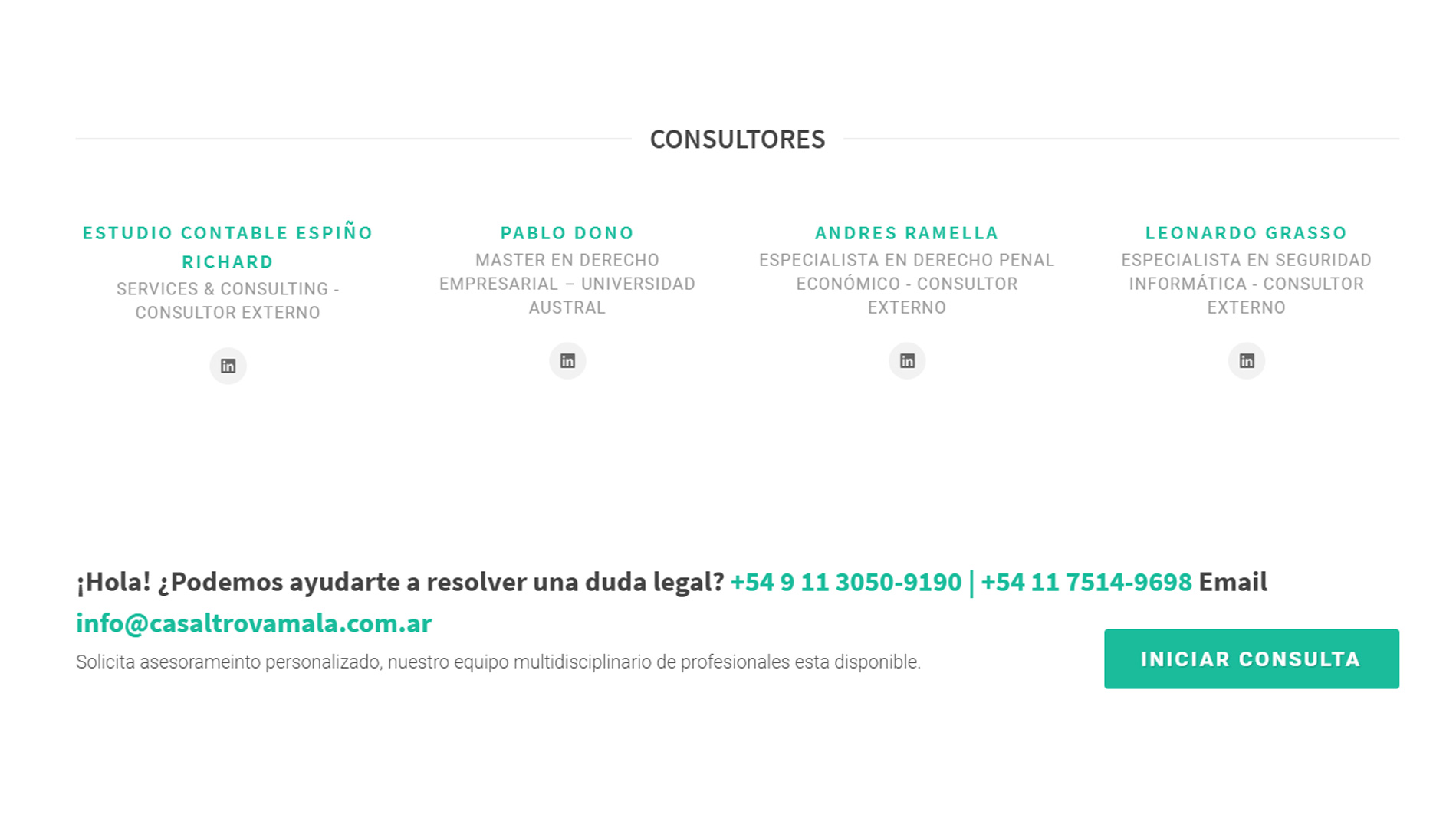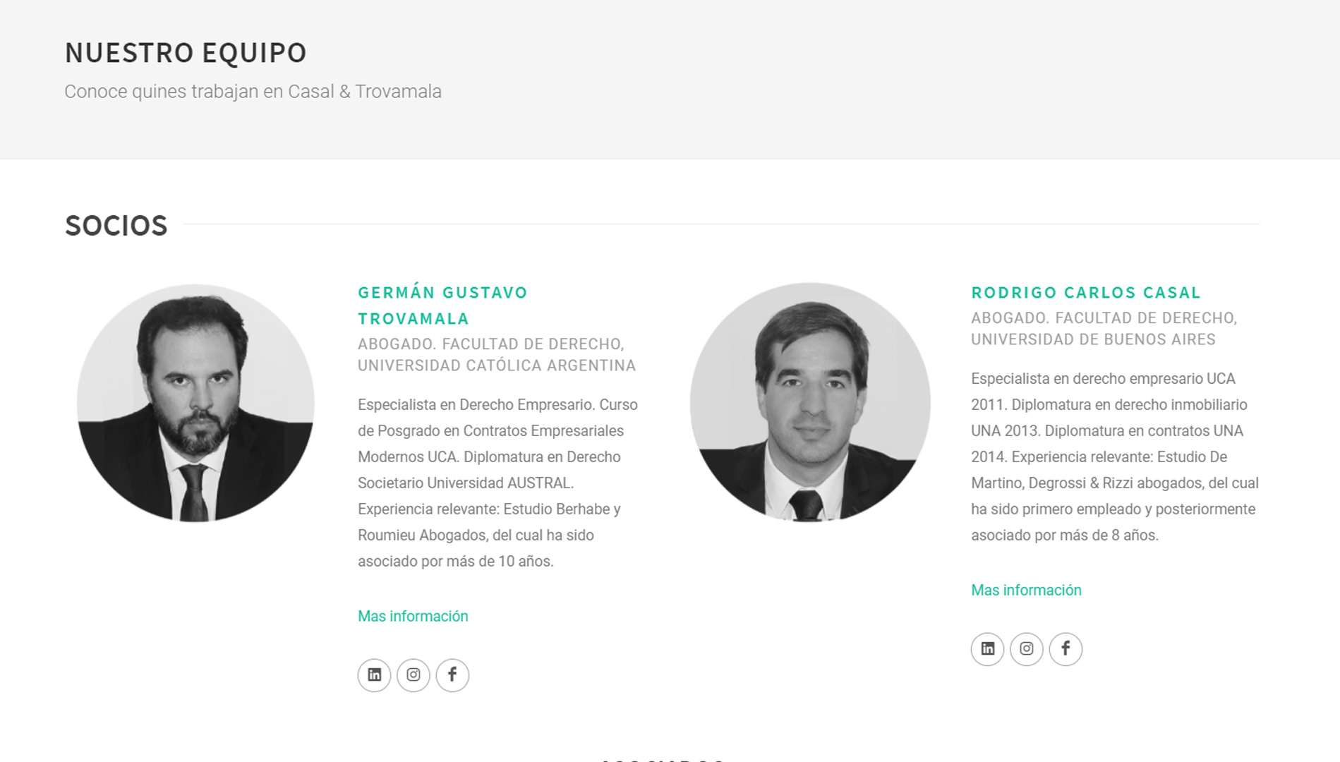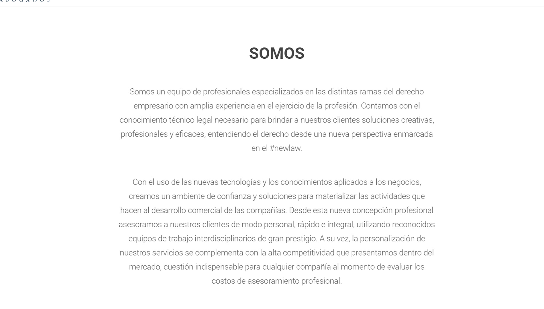 Es un equipo de profesionales especializados en las distintas ramas del derecho empresario con amplia experiencia en el ejercicio de la profesión. Cuentan con el conocimiento técnico legal necesario para brindar a sus clientes soluciones creativas, profesionales y eficaces, entendiendo el derecho desde una nueva perspectiva enmarcada en el #newlaw.